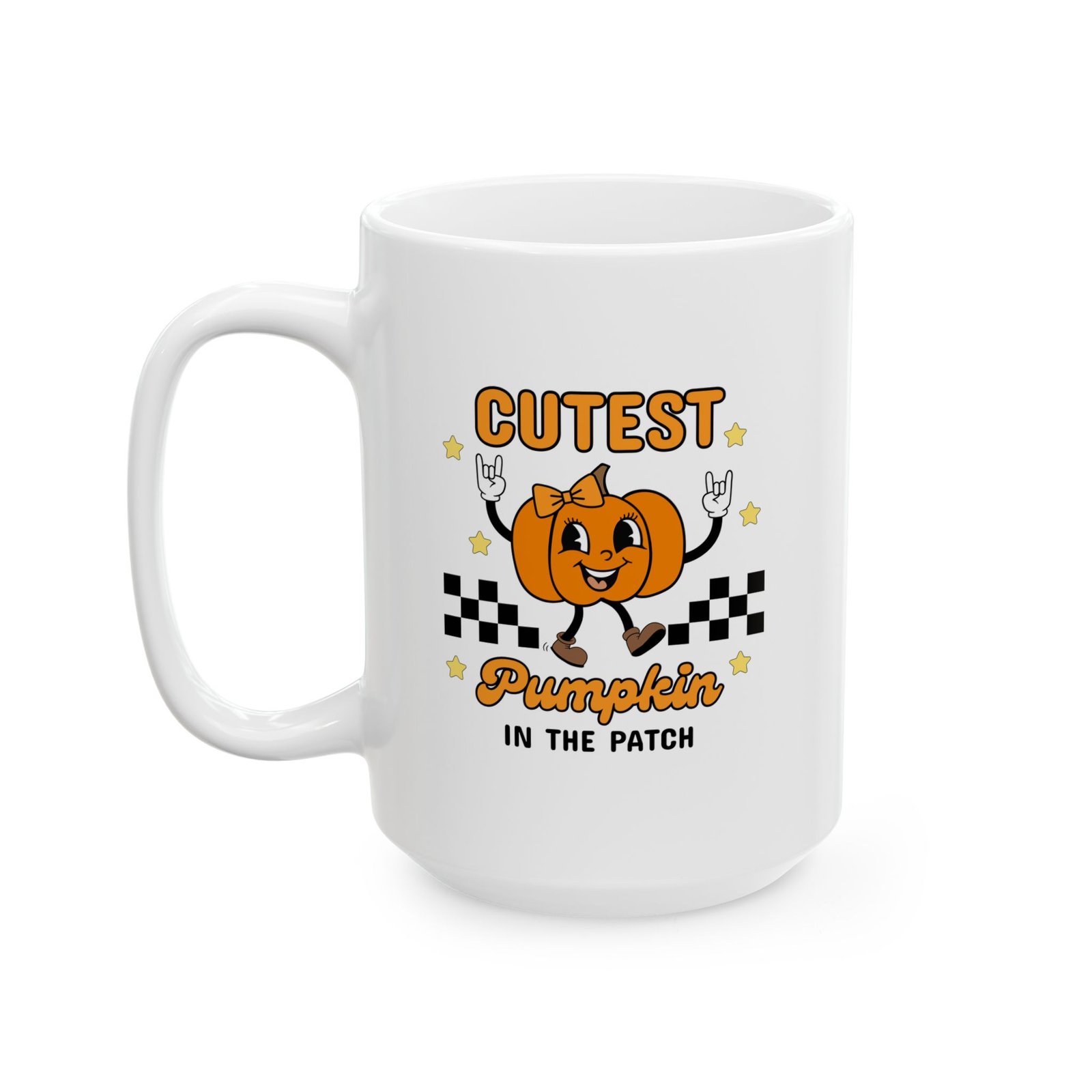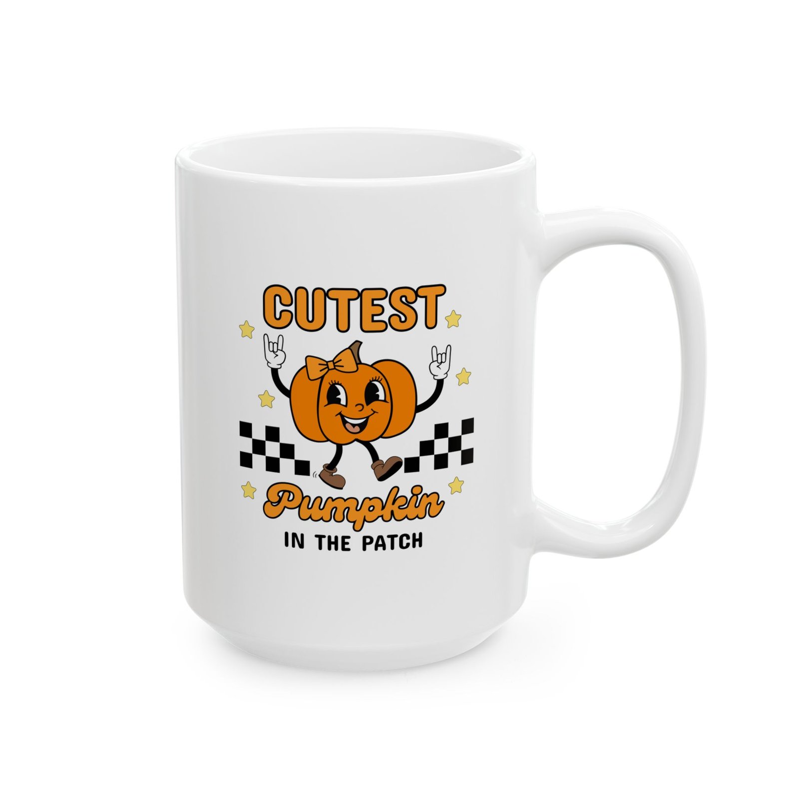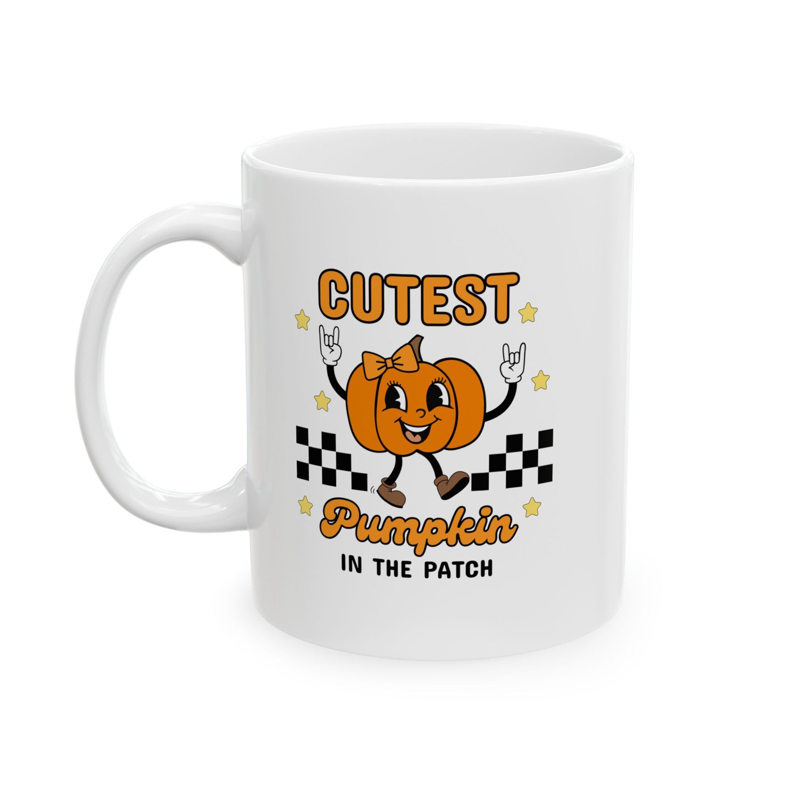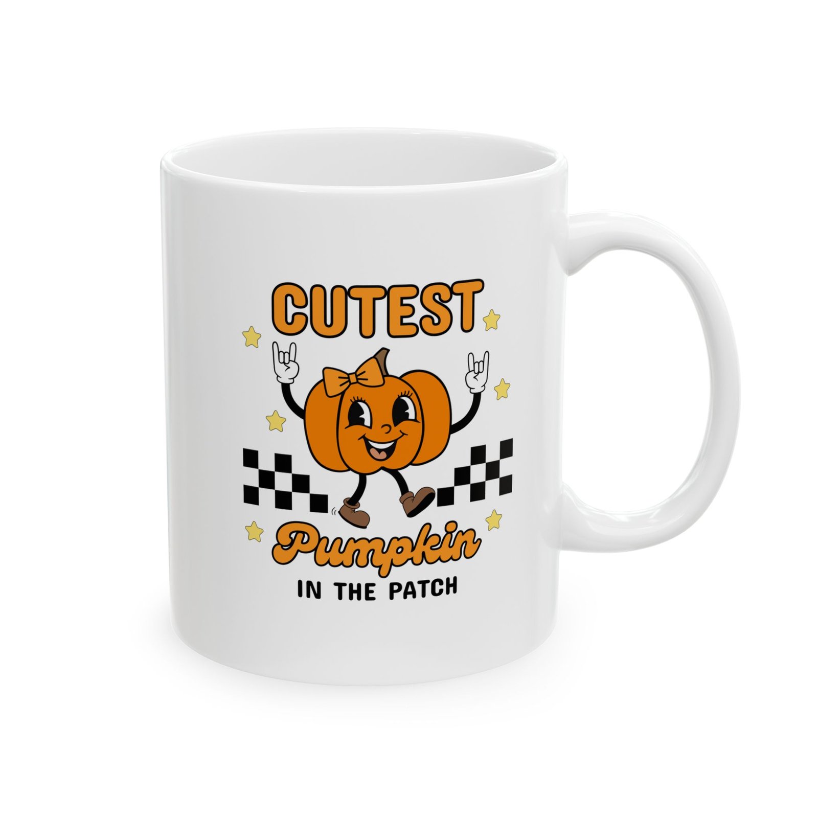 Looking for the cutest pumpkin mug to brighten up your fall mornings? 🎃☕ This “Cutest Pumpkin in the Patch” ceramic mug features an adorable girly pumpkin throwing up rocker hands, making it the perfect blend of spooky, festive, and fun. Whether you’re sipping coffee, tea, hot cocoa, or the party after cure, this mug adds instant Halloween cheer to your daily routine.